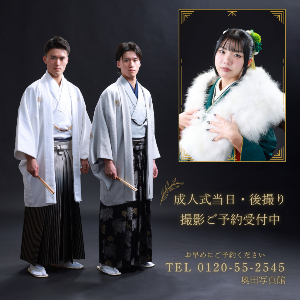 また、成人式以降の後撮りも行っておりますので、まだ成人の写真を撮影されてないというお客様はお気軽にお問い合わせください!
